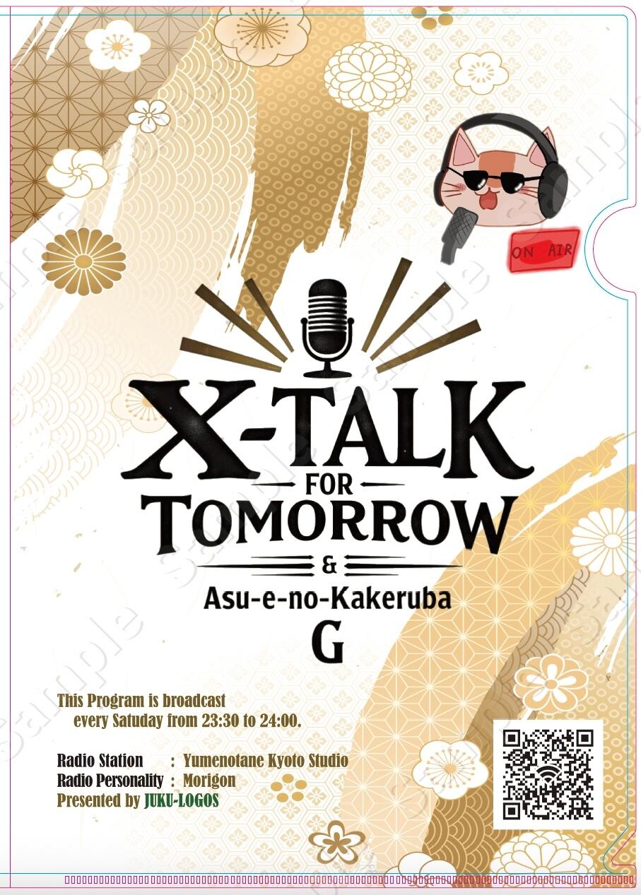明日へのカケルバのロゴと、京都スタジオ(雅なイメージ)の背景の入ったオシャレなクリアファイルです。